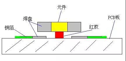 紅膠工藝顧名思義,就是用紅膠來(lái)進(jìn)行貼片,開(kāi)鋼網(wǎng)的時(shí)候不是開(kāi)元件的焊盤(pán)位置,而是在元件中間位置開(kāi)一個(gè)槽,刷上紅膠,然后上SMT把元件打上去,這樣元件就被紅膠粘在PCB板上,插上插件料后在過(guò)錫爐,元件的焊盤(pán)就會(huì)上錫焊好。