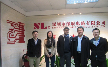2015年3月13日,香港寶捷電子有限公司總裁 Karuna Karan到訪深聯(lián),此次來訪主要目的是參觀工廠,電路板廠深聯(lián)電路市場及體系相關人員對客戶進行了熱情接待。
