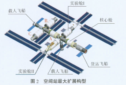 根據(jù)中國(guó)空間站工程的總體構(gòu)想,空間站包含天和核心艙、“問天”實(shí)驗(yàn)艙 I 和“夢(mèng)天”實(shí)驗(yàn)艙 II 三個(gè)主要部分,三者通過交會(huì)對(duì)接和艙體轉(zhuǎn)位組裝構(gòu)成空間站基本構(gòu)型。其中,核心艙前端設(shè)置節(jié)點(diǎn)艙,用于完成載人飛船的對(duì)接和停靠;核心艙后端還有一個(gè)對(duì)接口,用于貨運(yùn)飛船的對(duì)接和???。分設(shè)兩翼的兩個(gè)實(shí)驗(yàn)艙則通過節(jié)點(diǎn)艙與核心艙相連,配有用于科學(xué)實(shí)驗(yàn)的密封艙,還可以用來存放消耗品和補(bǔ)給貨物、備份核心艙部分平臺(tái)功能、安置多功能巡天光學(xué)設(shè)施等。