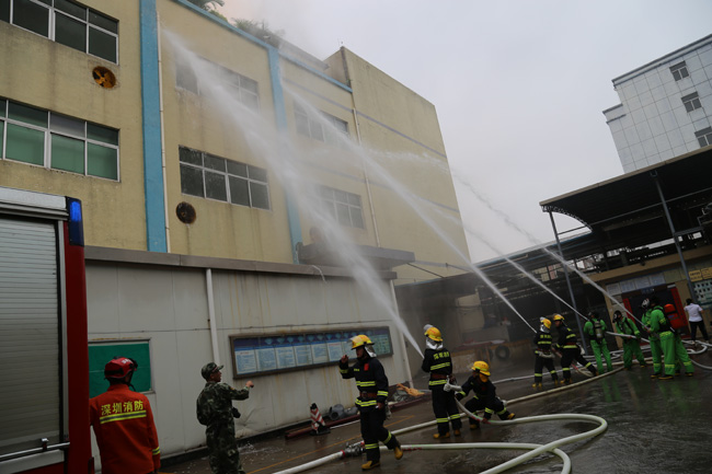 風雨無阻,深聯(lián)電路板廠聯(lián)合沙井安監(jiān)辦、沙井消防中隊應(yīng)急消防演練