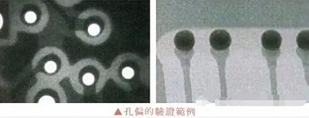 孔偏移問(wèn)題,理論上應(yīng)該歸類(lèi)為另一個(gè)議題,因?yàn)閷悠⒄迤F(xiàn)象問(wèn)題并不相同。如果是層偏,理論上還要分為內(nèi)層板內(nèi)偏移與板間偏移兩種。如果是板內(nèi)偏移,則應(yīng)該要進(jìn)行底片尺寸差異、曝光底片對(duì)位問(wèn)題檢討。如果是板間偏移,則應(yīng)該進(jìn)行內(nèi)層板尺寸變化、堆棧與打孔偏移檢討。如果是整板偏移,則又是不同現(xiàn)象,這可能是漲縮補(bǔ)償不良、壓板尺寸不穩(wěn)定、鉆孔偏移、鉆靶偏移等問(wèn)題。