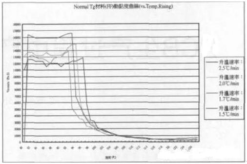 圖1為普通FR-4樹脂在不同升溫速率下的動粘底曲線,一般情況下,材料從90℃左右開始流動,并在達(dá)到TG點(diǎn)以上開始交聯(lián)固化,在固化之前半固化片為自由狀態(tài),此時芯板和銅箔處在受熱后自由膨脹狀態(tài),其變形量可以通過各自的CTE和溫度變化值得到。