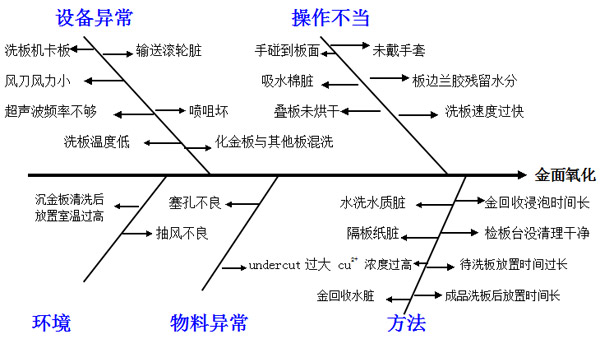三、沉金板氧化魚骨圖分析(根據(jù)人、機、物、法、環(huán)):