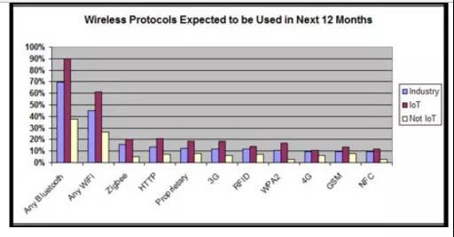上圖表示開發(fā)者對采用無線協(xié)議的預期,紅色表示物聯(lián)網