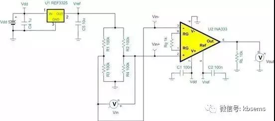 圖 2 是我用來展示焊劑污染所會(huì)造成結(jié)果的測試電路。由 2.5V 參考電壓激活的平衡惠斯頓接橋網(wǎng)絡(luò)可仿真高阻抗橋接傳感器。差分橋接傳感器輸出 VIN+ - VIN- 可連接至增益為 101V/V 的 INA333。在理想狀態(tài)下,由于橋接處于平衡狀態(tài),因而 VIN+ - VIN- = 0V。但焊劑污染會(huì)造成實(shí)際橋接傳感器電壓隨時(shí)間慢慢漂移。