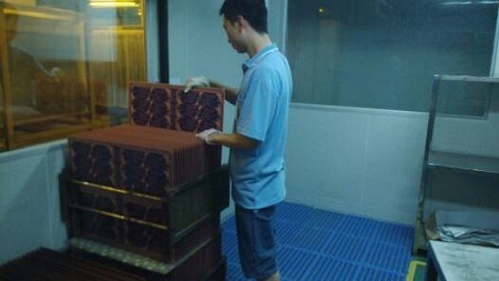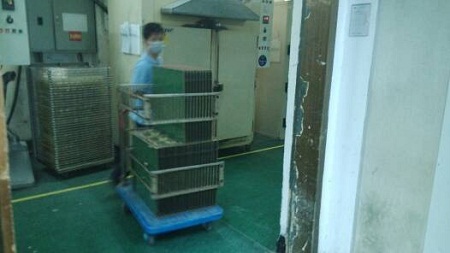 據(jù)說干菲林這份工作,還是需要點肱二頭肌才能駕馭得了的,瞧這小哥剛搬了顯影后的板子上架毫不費力,此時正一塊塊整理著。