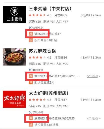 注:在美團(tuán)和餓了么,折扣商品不能與滿減共享。