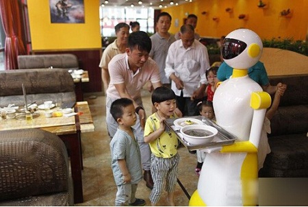 遠(yuǎn)的咱就不扯了,咱來(lái)看看這家湘菜館的機(jī)器人究竟有多大魅力~