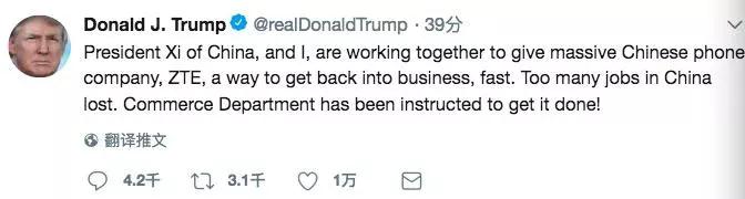 但在今天凌晨,特朗普在推特上發(fā)布了一個重磅消息:習(xí)主席和我正在合作,將為中興提供一種很快恢復(fù)業(yè)務(wù)的途徑。(中興事件造成)中國很多工作崗位丟失了。商務(wù)部已被指示去完成這件事。”
