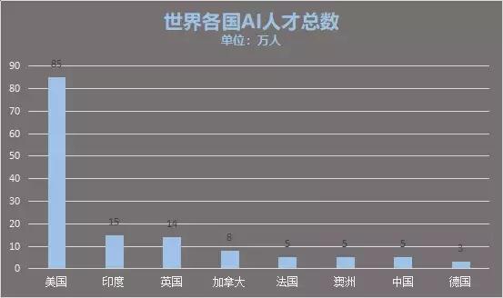 更重要的是,國(guó)內(nèi)的AI人才市場(chǎng)存在著相當(dāng)大的需求缺口。根據(jù)領(lǐng)英公司(LinkedIn)發(fā)布的《全球AI領(lǐng)域人才報(bào)告》中,可以看出全球有逾180萬的AI相關(guān)人才,其中排在第一位的是美國(guó),幾乎占全球的一半,擁有逾85萬人。而中國(guó)排在第七位,僅有5萬人,和美國(guó)有著17倍的差距。