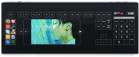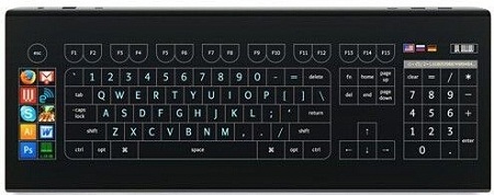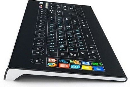 這款鍵盤從外觀看來非常炫酷,沒有實際的物理按鍵,因此形狀和大小不受限制。鍵盤表面的任何部分,可以通過相應軟件進行功能調(diào)整,或顯示圖像,或觀看視頻又或者可以錄入內(nèi)容。