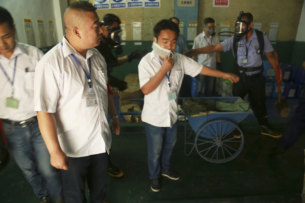 下午3點50分,在現(xiàn)場總指揮楊經(jīng)理的指揮下,演習(xí)正式開始: