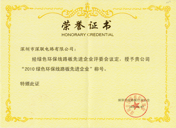 2010年線路板行業(yè)綠色環(huán)保先進企業(yè)
