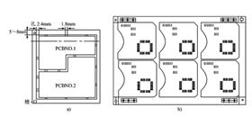 對于小相同印制電路的PCB拼合亦可按此原則進(jìn)行,但應(yīng)注意元件位號的編寫方法。拼合的印制電路板俗稱“郵票”板,其結(jié)構(gòu)示意圖如下右圖所示。