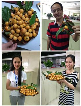 不過,果實都熟了,哪有不吃的道理呢,誰能忍受這個誘惑嘛!作為人政部的一員,當然要體恤吃貨同事們的心思,乘著好天氣,把黃金枇杷全給收了。純天然沒打過農(nóng)藥的果子,吃起來的感覺,那是根本停不下來??!吃的同時當然忘不了現(xiàn)場分享的啦,見者有份,哈哈。