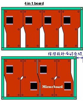 在電子組裝制造業(yè),一般我們稱(chēng)呼的【陰陽(yáng)板(Mirror Board)】有兩種類(lèi)型,第一種類(lèi)型是正反面顛倒的陰陽(yáng)板(Different side mirror board),也有是一片印制電路板的第一面與另一片板子的第二面呈現(xiàn)在拼板的同一面上;另一種類(lèi)型則是所有的拼板都同一面但左右顛倒的陰陽(yáng)板(Same side mirror board),比如說(shuō)pdpd的排版。