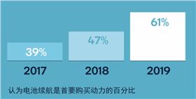 消費(fèi)者對(duì)電池續(xù)航的重視程度幾乎與音質(zhì)一樣。這凸顯了人們對(duì)更高的便攜性、更長(zhǎng)的播放時(shí)間以及更傾向無(wú)線設(shè)備的期望。61%的消費(fèi)者認(rèn)為更長(zhǎng)的電池續(xù)航是其主要購(gòu)買動(dòng)力,而這一比例在 2018 年的報(bào)告中為 47%。該比例的顯著增長(zhǎng)反映了消費(fèi)者傾向購(gòu)買無(wú)線產(chǎn)品,因?yàn)槠渥層脩艨梢噪S時(shí)隨地自在聆聽(tīng)。
