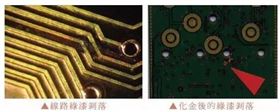 PCB在過自動(dòng)錫爐后,其板下線路的絕緣綠漆會(huì)剝落。不知原因有那些?化金后S/M Peeling又是因?yàn)槭裁丛颍?br style="text-indent: 2em; text-align: left;"/> 綠漆脫落有三種較大可能性,第一是綠漆本身性質(zhì)不足以承受錫爐考驗(yàn),這可能是綠漆過期失效或操作不良造成性質(zhì)不足。業(yè)者使用的綠漆幾乎都會(huì)進(jìn)行耐熱、信賴度等測(cè)試程序,因此不應(yīng)該常態(tài)性出現(xiàn)問題,這方面要檢討材料本身是否有變化或制程產(chǎn)生了變化。