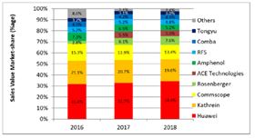 圖1:2016-2018年基站天線全球市場(chǎng)份額排名