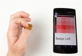 電容觸摸板下邊的線路板上安裝有處理器、電池、傳感器芯片和藍(lán)牙無線模塊,兩者通過帶狀電纜相連。研究者正在考慮把這些元器件集成到一個(gè)芯片中,這有助于減小尺寸、降低能耗。